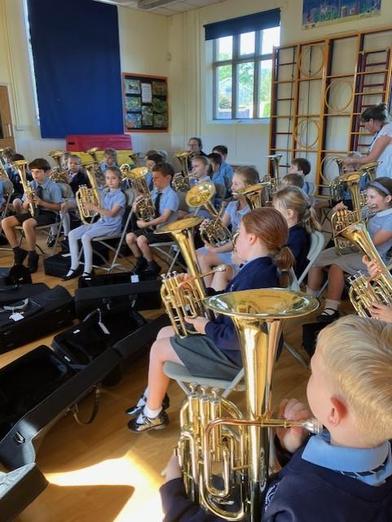 This year, the children in Years 3 and 4 will be having two terms of instrumental lessons from The Berkshire Music Trust. They will be learning to play the Tenor Horn. They had their first lesson today and amazingly everyone was able to make a sound.